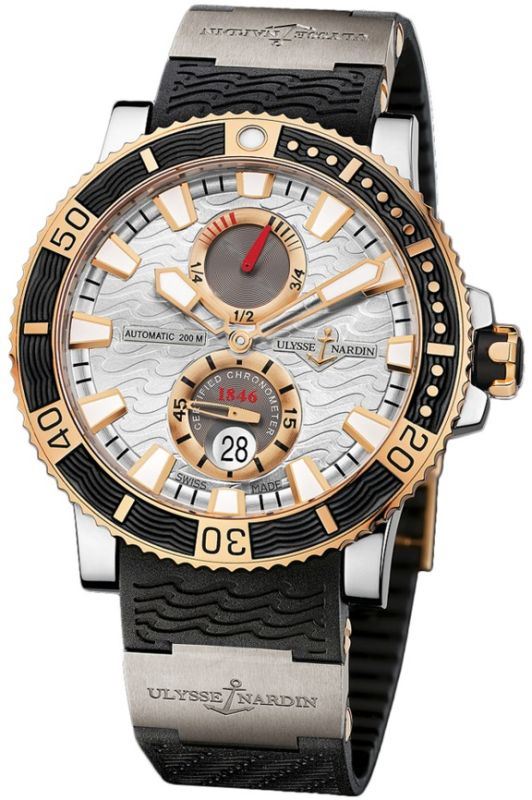 Model: 265-90-3T/91 - CASE = [Material:Titanium & Rose Gold], [Case Diameter:45], [Case Thickness:14.60mm], [Bezel:Uni-Directional Rotating], [Case Back:Skeleton], [Water Resistant:200 Meters - 660 Feet], [Crystal:Scratch Resistant Sapphire], DIAL = [Color:Silver], MOVEMENT = [Type:Automatic], [Crown:Screw Down], BAND = [Clasp:Push Button Folding Clasp], [Type:Black Rubber], (Usually ships in 1 to 2 weeks.)