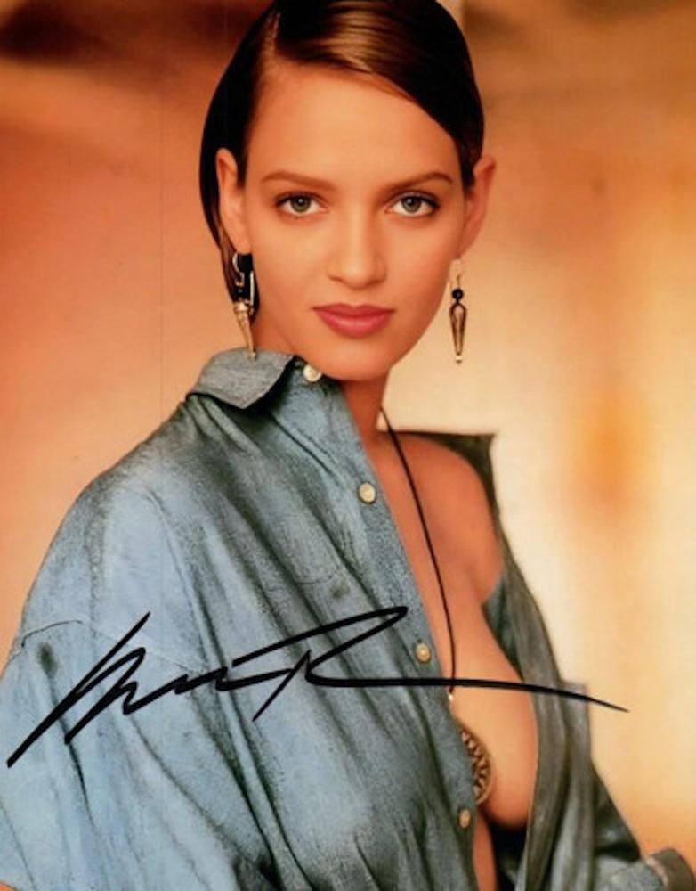 Uma Thurman facsimile signed photo. 8x10 inches. This item is a reprint of an original autograph