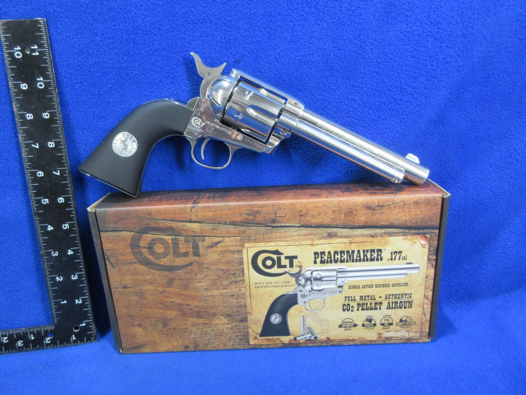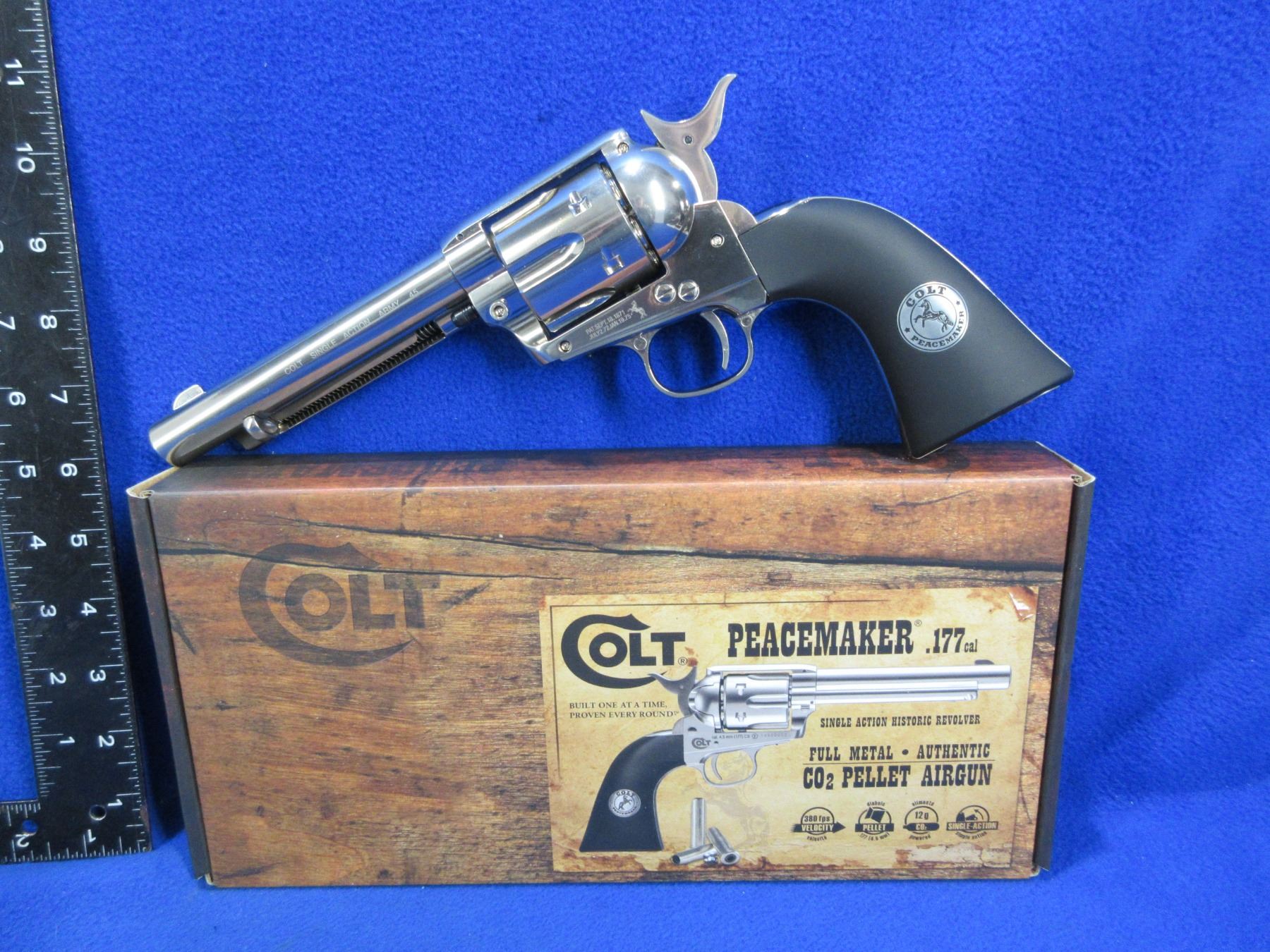 Umarex .177 Cal. Colt Single Action Army Peacemaker CO2 Pellet Airgun - 5" rifled barrel, 380 FPS, 6-round capacity; Includes 6 pellet casings, uses 12-gram CO2 cartridges, comes with original box - Ser. # 22J170655