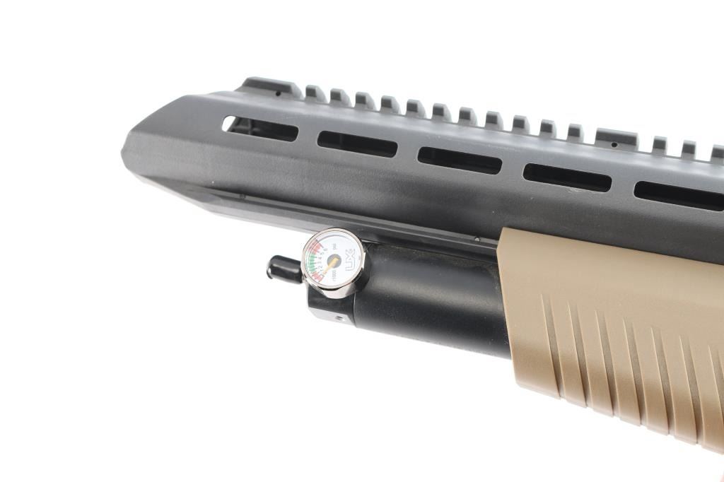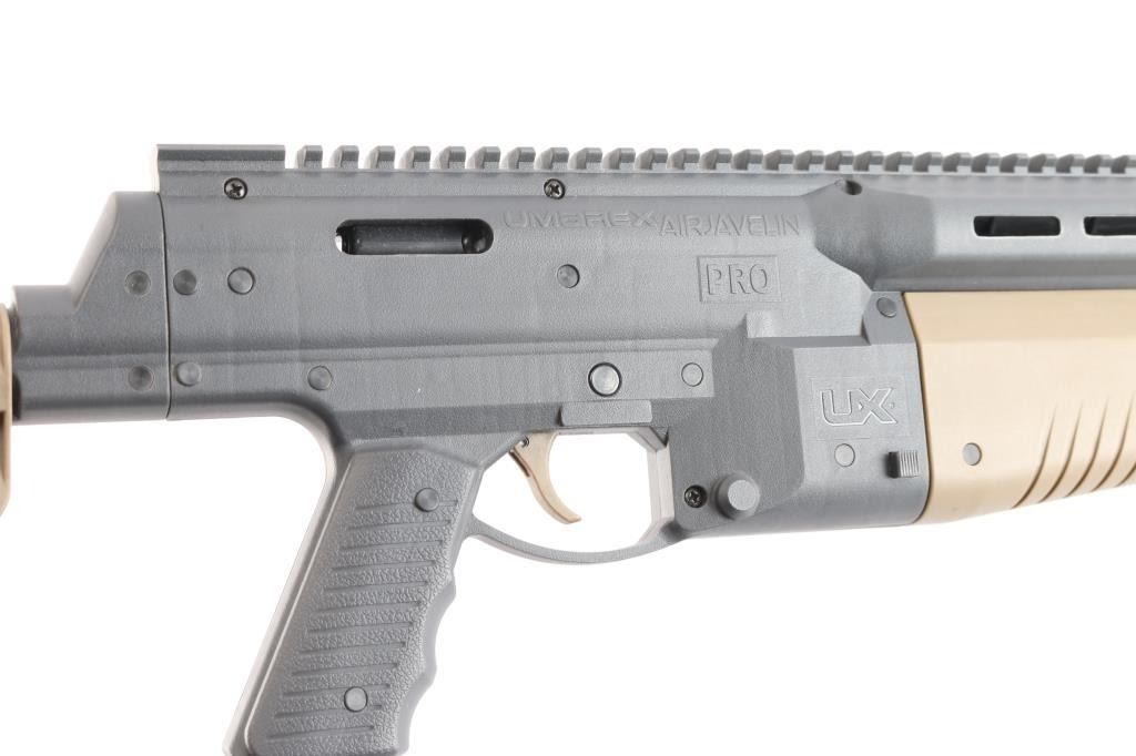 PCP -C02 Powered AirJavelin Pro lightweight archery rifle. 370 fps, 52 ft-lbs using 170 gr Umarex AirJavelin arrows, 1,500 PSI regulator, 7.4 cu. in. / 121.3 cc capacity air tank. 25 effective shots on a single fill, 7 minutes to fill with the Umarex ReadyAir Airgun compressor, ambidextrous bolt design, manual push button safety, 6.25 lb. single stage trigger, integrated picatinney rail and M-LOK slots, lightweight polymer adjustable stock with sling slot. Excellent, like new condition. Comes in factory box with manual and five new sets of 3 Umarex arrows, (15) total.