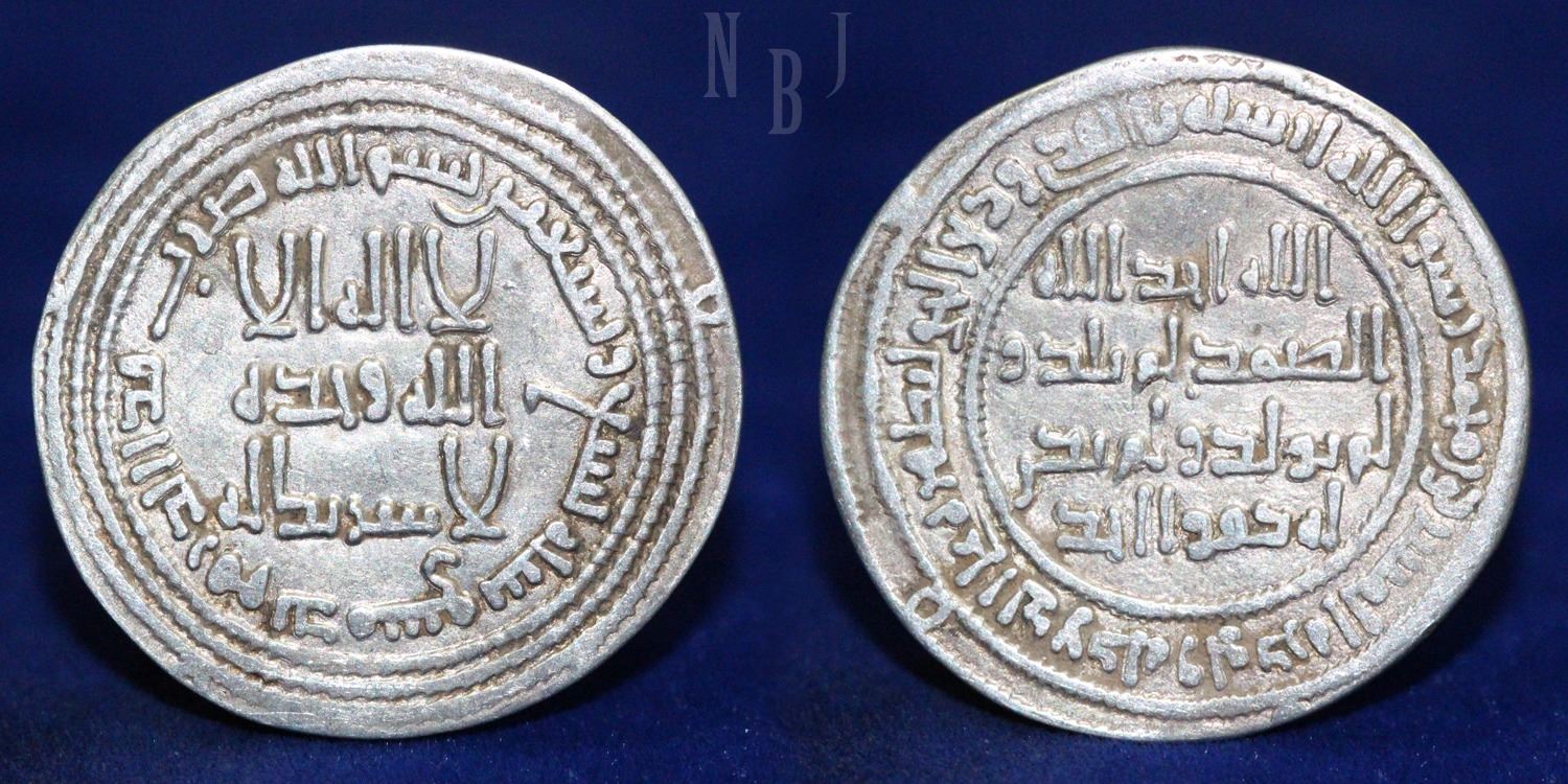 Umayyad AR Dirham. Sulayman (b. 'Abd al-Malik). 96-99AH / 715-717AD. Dimashq minted. 99AH dated. (2.47gm, 26mm) Near Extremely Fine.
