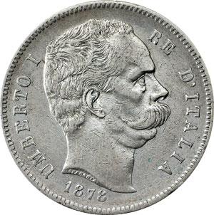 Casa Savoia - Regno di Sardegna - Regno di Italia. Regno di Italia. Umberto I (1878-1900). 5 lire 1878. Pag. 589. Mont. 32. AG. RR. BB+.