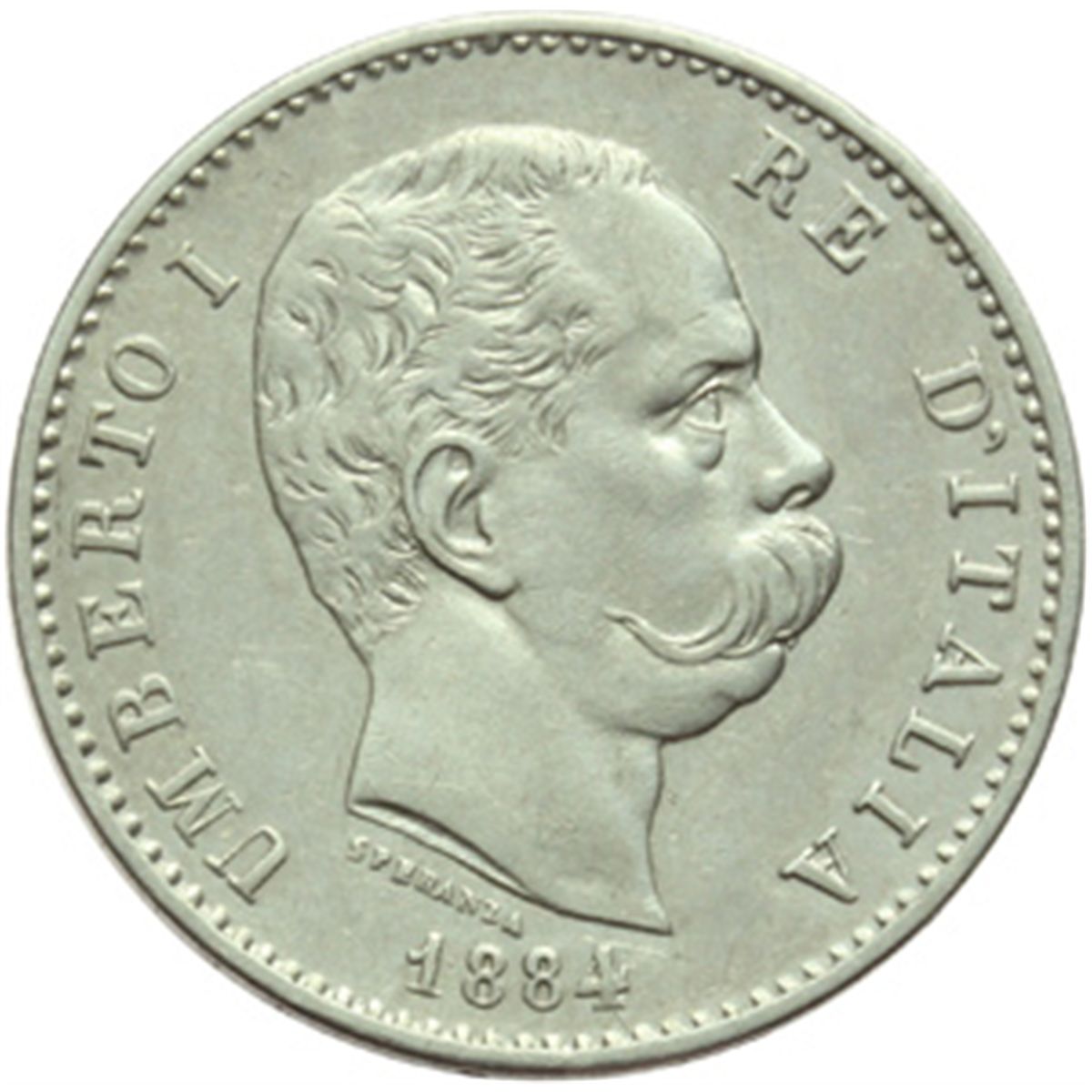 Casa Savoia - Regno di Sardegna - Regno di Italia. Regno di Italia. Umberto I (1878-1900). Lira 1884. Pag. 602. Mont. 47. AG. NC. SPL/qFDC.
