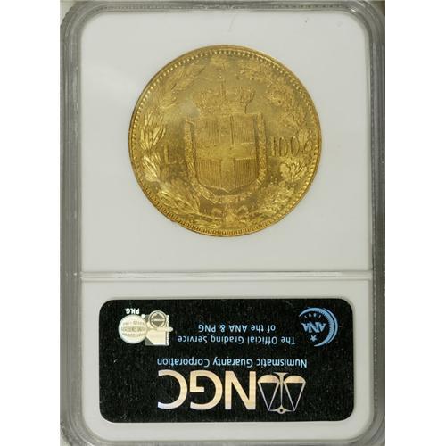 Umberto I gold 100-Lire 1888-R, KM-22, MS61 NGC, proofl