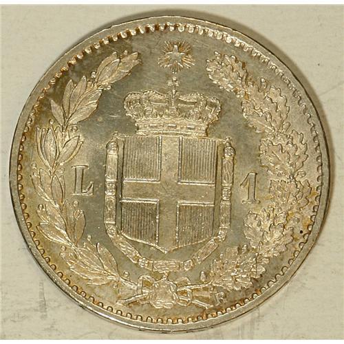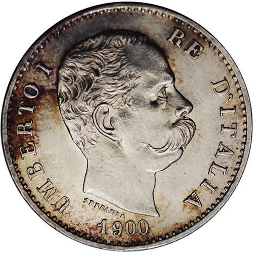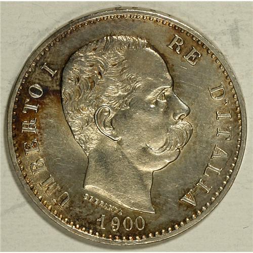 <B>Umberto I silver 1-Lire 1900-R,</B></I> KM-24.1, Choice UNC with bright luster, sharp strike, a few little hairlines, couple of splashes of gold toning.<BR><BR><b>Shipping:</b> Coin/Currency (<a target="_blank" href="http://www.heritageauctions.com/common/shipping.php">view shipping information</a>)