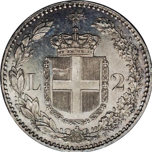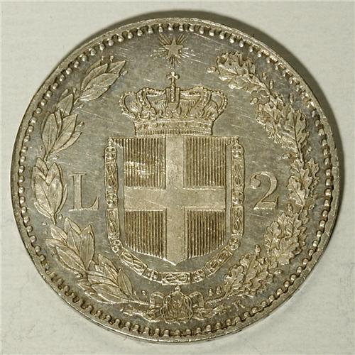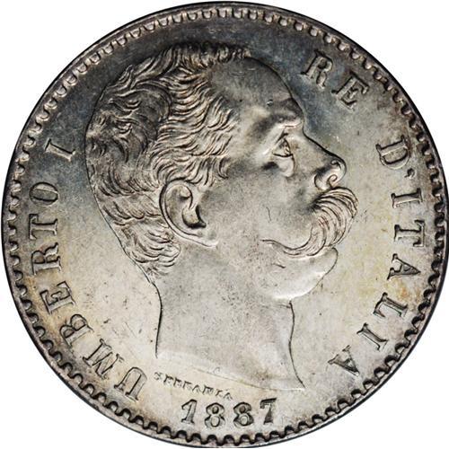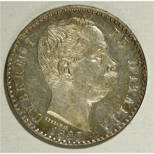 <B>Umberto I silver 2-Lire 1887-R,</B></I> KM-23, prooflike UNC, light abrasions, bright luster with a hint of golden gray toning.<BR><BR><b>Shipping:</b> Coin/Currency (<a target="_blank" href="http://www.heritageauctions.com/common/shipping.php">view shipping information</a>)