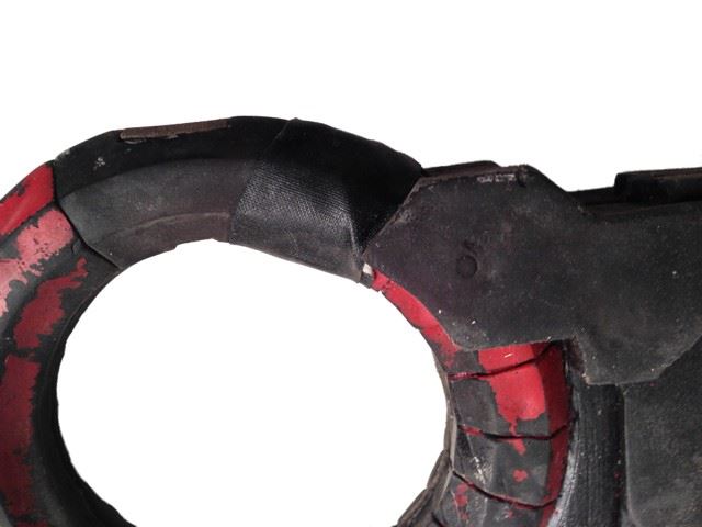 Umbrella Corporation screen used colonial red and canyon black manacles(handcuffs) both of the cuffs have black tape around part of the cuff. (Non-functioning soft rubber) (Approx. 12" x 5") One of the last two manacles remaining from the film!