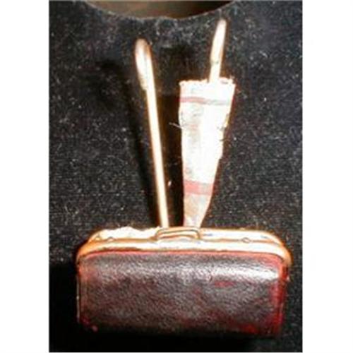 <tr><td>Title:Umbrella LEATHER Bag Pin - ANTIQUE</td></tr>