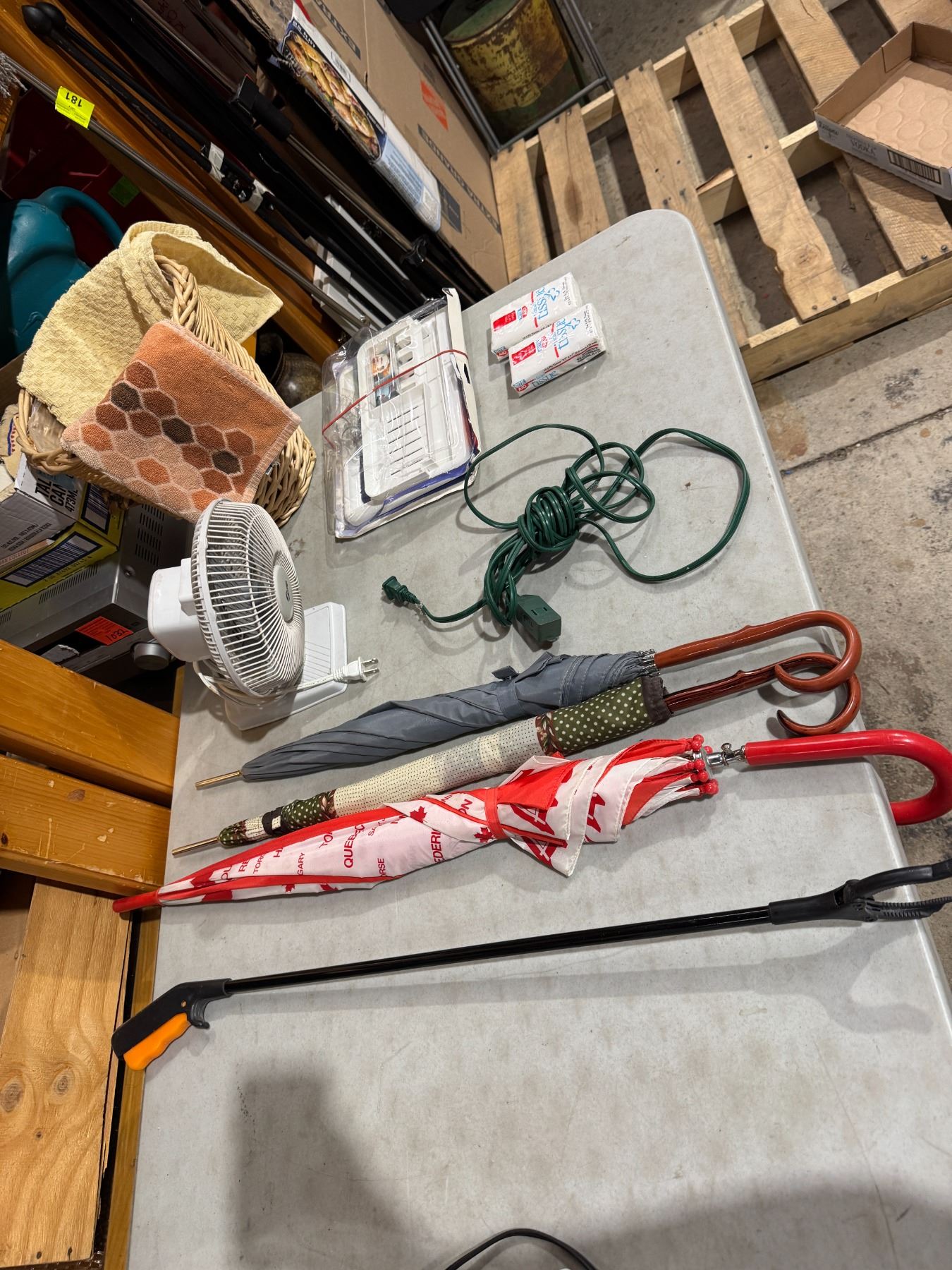 Umbrella, grabber, fan, tissue, wastebasket, extension cord, etc.