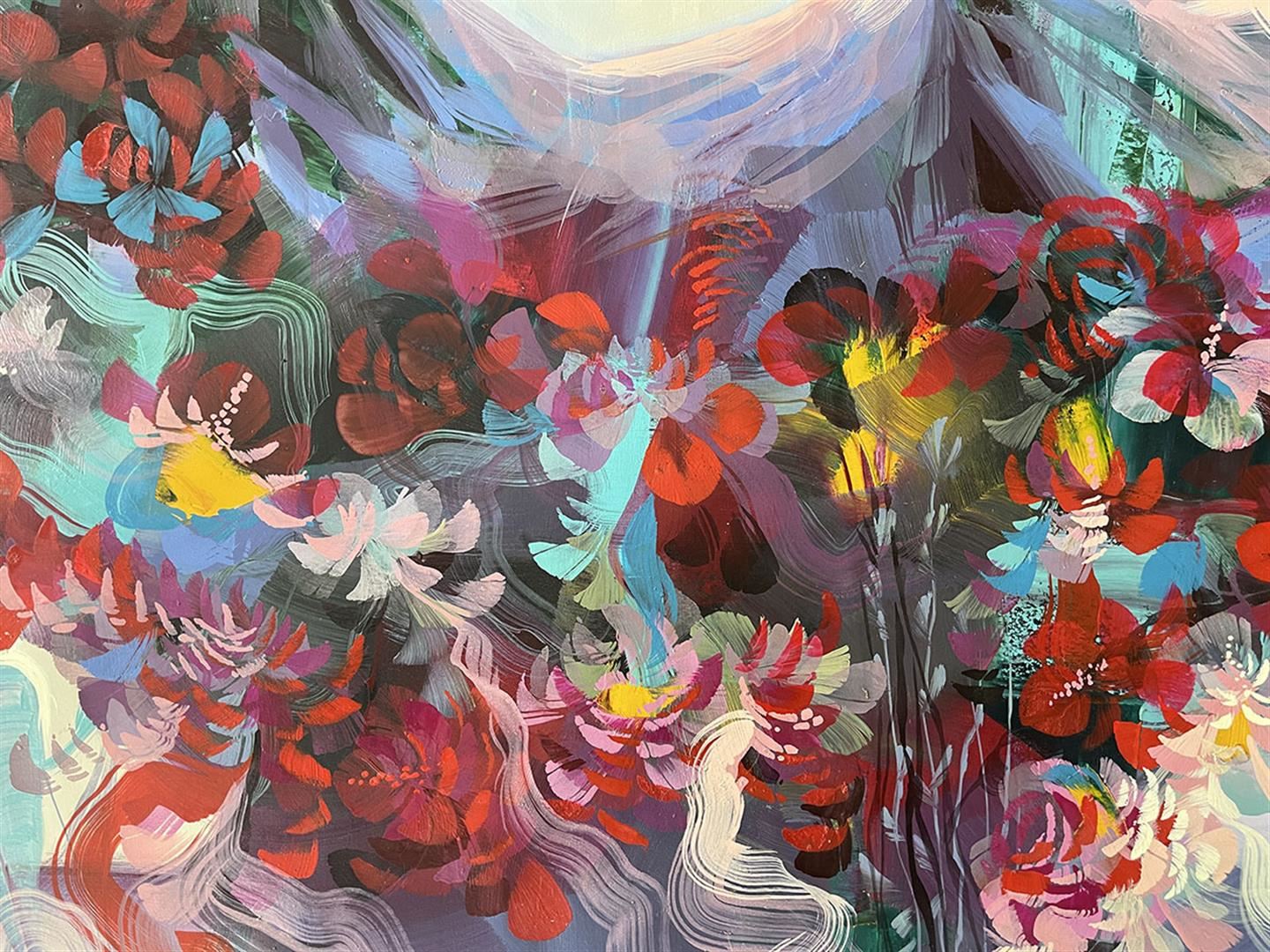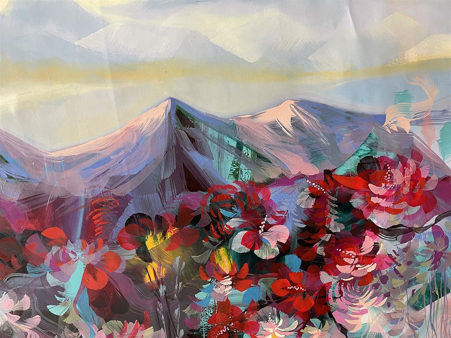 Stunning original acrylic on canvas. Hand signed by artist. This artwork comes rolled. Approximately 84x48 inches