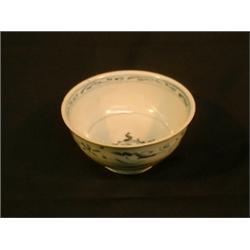 Un bol à décor intérieur fleuri, l'extérieur orné d'un bandeau de fleurs et de feuilles au-dessus de motifs lotiformes. A bowl, the inside decorated with a flower, the outside with a floral and foliate band above a lotus leaf frieze. $125/175