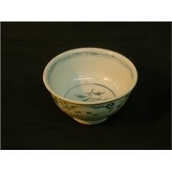 Un bol à décor intérieur fleuri, l'extérieur orné d'un bandeau de fleurs et de feuilles au-dessus de motifs lotiformes. A bowl, the inside decorated with a flower, the outside with a floral and foliate band above a lotus leaf frieze. $125/175