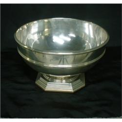 Un bol en argent de Birks sur une base octogonale. A Birks sterling silver bowl on an octagonal base. Poids approx./Weight 728gr - 23.40oz. $200/300