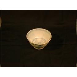 Un bol, l'intérieur portant le caractère: "Phuc", (richesse), l'extérieur orné d'un bandeau de fleurs et de feuilles au-dessus de motifs lotiformes. A bowl, the inside with the character "Phuc", (wealth), the outside with a floral and foliate band above a lotus leaf frieze. $200/300