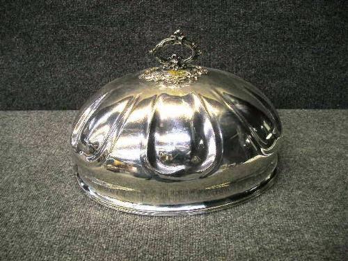 A plated silver bell dish cover.