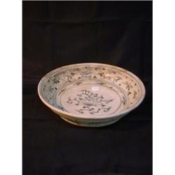 Un grand plat creux à décor de pivoines doubles dans un encadrement de nuages bordé de feuilles et de fleurs. A deep charger decorated with double peonies framed by a circle of clouds surrounded by flowers and leaves. Dia./Dia. 13 1/2" - 34cm. $600/800