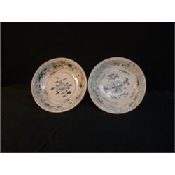 Un lot de deux plats creux à décor fleuri dans un encadrement de nuages bordé de fleurs et de feuilles. A lot of two deep dishes decorated with flowers surrounded by clouds and bordered by foliage and flower heads. Dia./Dia. 9" - 23cm. $350/500
