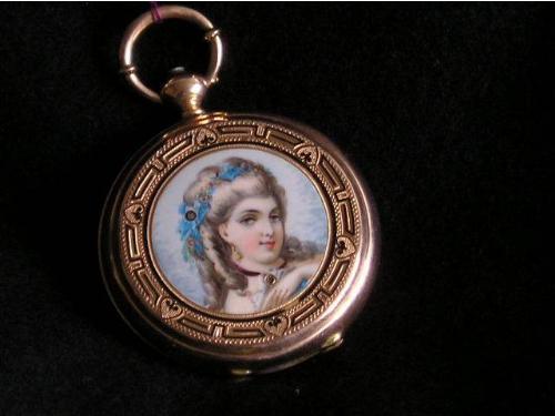 An 18kt yellow gold Ulysse Nardin, Le Locle, Switzerland, pocket watch, circa 1900, the case enamelled with the bust of a young beauty, signed.