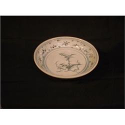 Un plat creux à décor de bambous dans un encadrement de feuillage et de fleurs. A deep serving dish decorated with bamboos within a band of flowers and leaf sprays. Dia./Dia. 9 1/2" - 24cm. $175/250