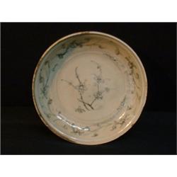 Un plat creux à décor de branches de prunus en fleur dans un encadrement de fleurs et de feuilles. A deep dish decorated with flowering plum branches surrounded by leaves and flowers. Dia./Dia. 9 1/2" - 24cm. $175/250