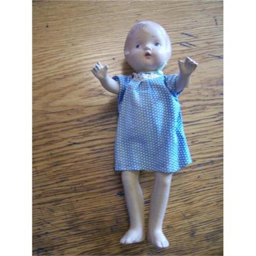 Wonderful old composition Patsy Doll.She is un-signed and has original dress.She is in excellent condition and measures around 9 1/2" tall.Movable legs and arms.Crazing on legs but not bad.Minor (very light) cracking? on top of head but not anything serious.Need to mention this though.