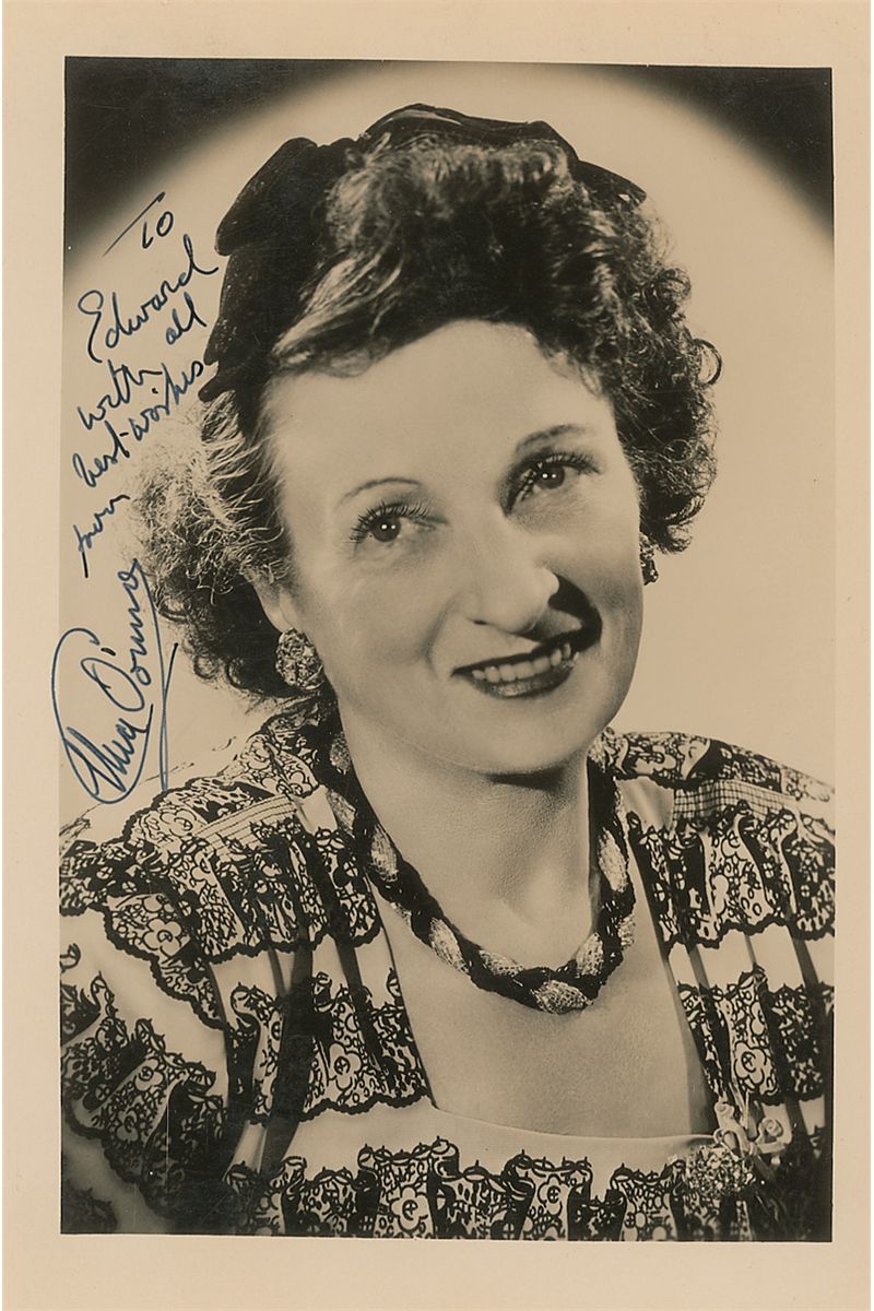 Vintage glossy 5 x 7.25 photo of the Irish actress, signed and inscribed in fountain pen “To Edward, with all best wishes, from Una O’Connor.” In fine condition.