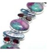 Silver & Unakite, Biwa Pearl & Garnet Bracelet