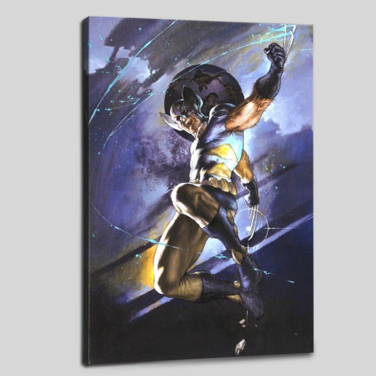 A piece of comic book history, this limited edition, from original art by Simone Bianchi, depicts the classic character Wolverine. Known for his use of ink wash in his work, Simone Bianchi is an Italian comic book artist famous for his X-Men Unlimited artwork. "Uncanny X-Men #539" is limited edition giclee on canvas by Simone Bianchi presented by Marvel Comics. This piece comes gallery wrapped. Includes Certificate of Authenticity! Measure approx. 18" x 27" (image); 1.5" (depth).
