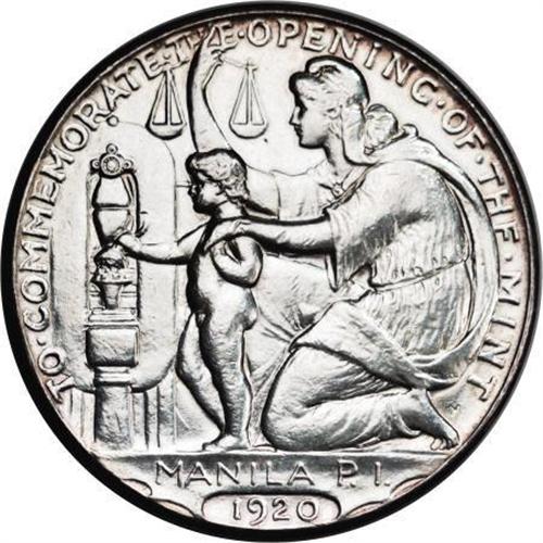 <B>Uncertified 1920 Manila Mint Opening (Wilson Dollar), HK-449.</B></I> Silver, 38 mm. So-called Wilson dollar, issued to commemorate the opening of the U.S. branch mint in Manila , Philippines, July 16, 1920<B>. </B></I>This was the only overseas mint ever established by the United States. This is a circulated example with minor wear and contact marks. The majority of these were dumped in Manila Bay at the onset of the war in the Pacific. The original mintage was a mere 2,200 coins,<B> </B></I>and with a unknown amount melted, lost in the ocean, or with sea damage, the true number of unimpaired examples may never be known.<BR><BR><b>Shipping:</b> Coins & Currency (<a target="_blank" href="http://www.heritageauctions.com/common/shipping.php">view shipping information</a>)