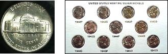 Uncirculated 1942-45 War Nickel Set