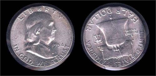 Uncirculated 1954-S Franklin Half w/small clip; As if the coin wasn't scarce enough!