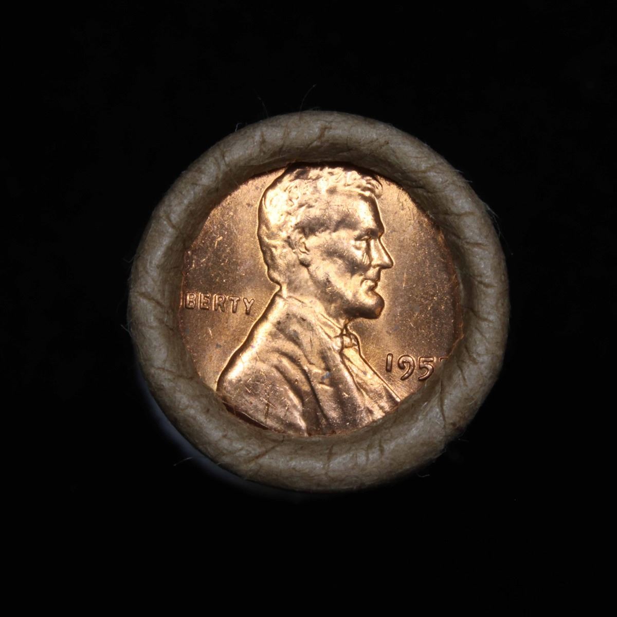 Uncirculated 1c orig shotgun roll, 1957-p in old Brink's wrapper