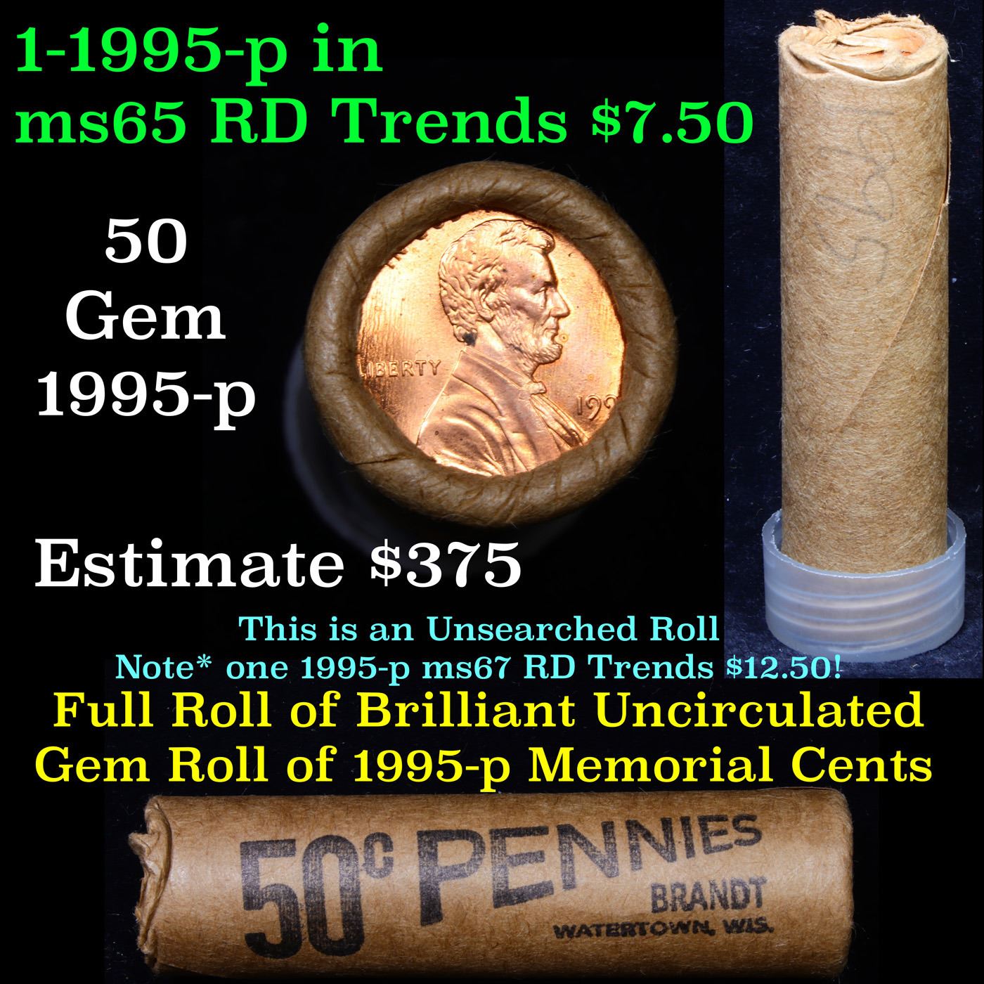 Uncirculated 1c orig shotgun roll, 1995-p In Old Brandt wrapper . ÊA terrific orig shotgun roll of Lincoln cents. All coins cherry red. ÊTrends ms65 rd $7.50 Estimate $375