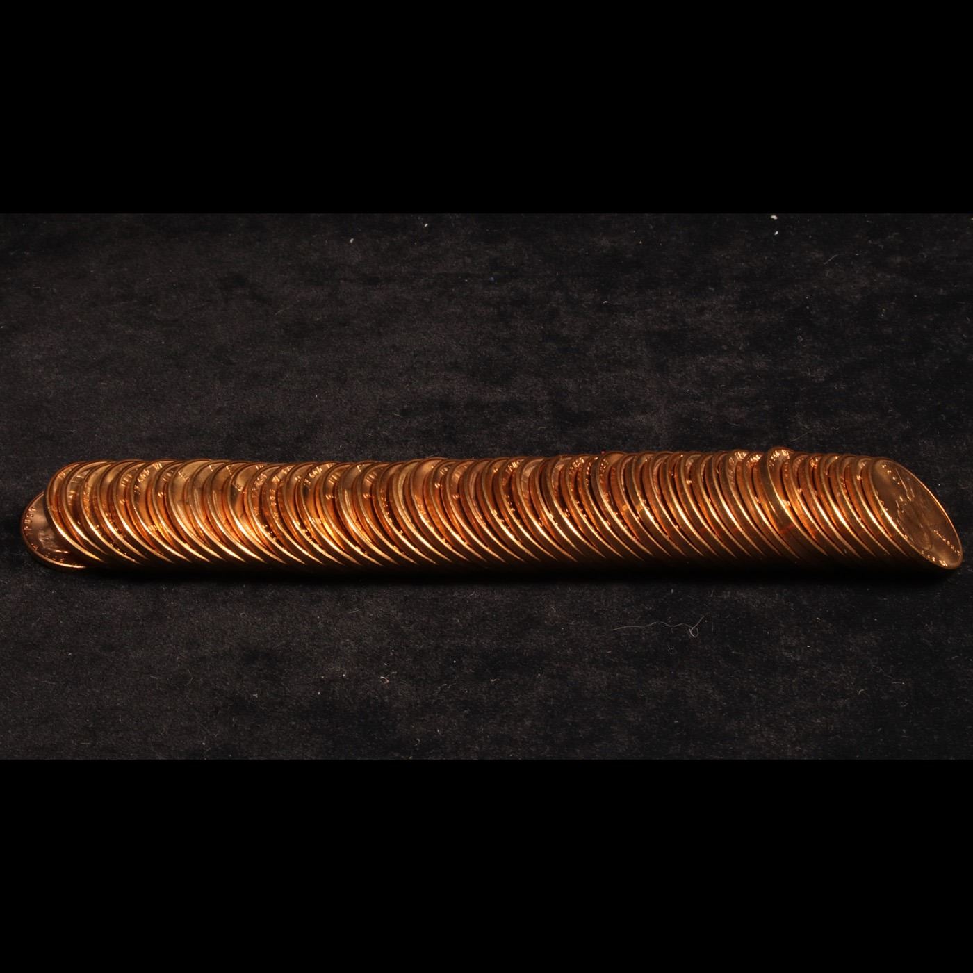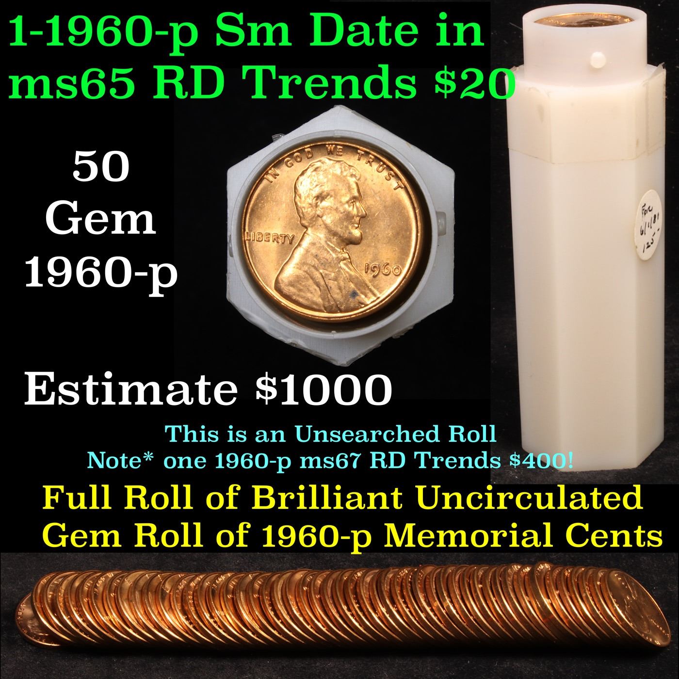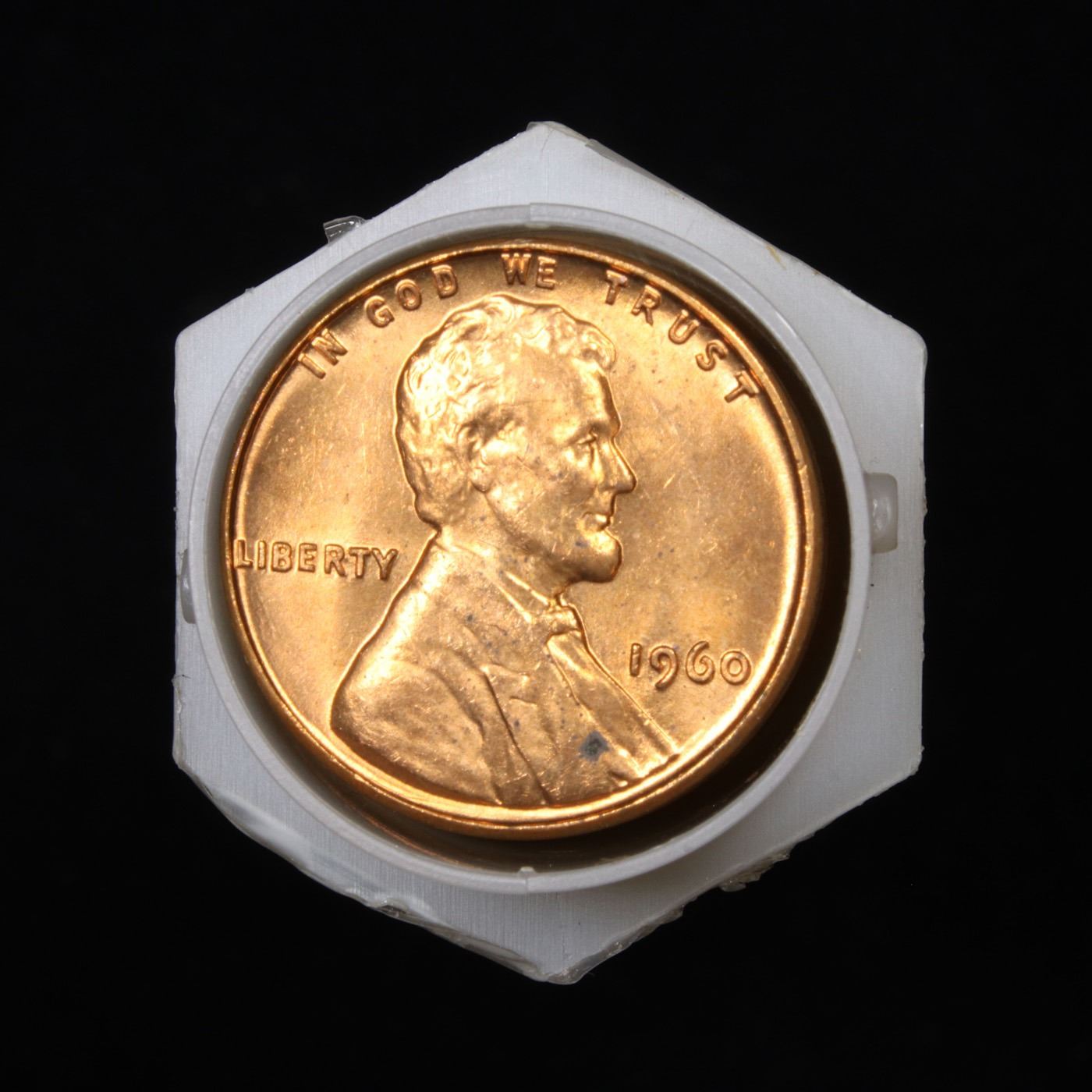 Uncirculated Lincoln 1c roll, 1960-p Small date 50 pcs Grades. A terrific orig roll of Lincoln cents. All coins cherry red.Trends ms65 rd $20 Estimate $1000