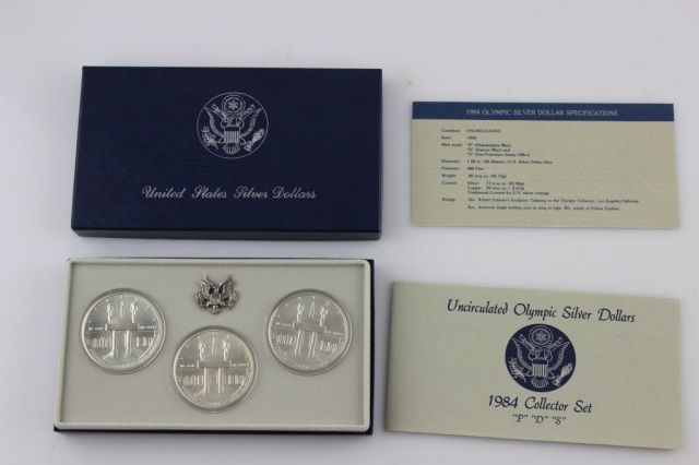 This lot is the 1984 Uncirculated Olympic Silver Dollars from each mint. This collection comes in original mint packaging and features the Olympic Coliseum at XXIII Summer Olympic Games in Los Angeles. Each of these coins is made of 90% silver. Each of these coins has a retail value of over $36! Don't pass on you chance to add this wonderful set to your collection.
