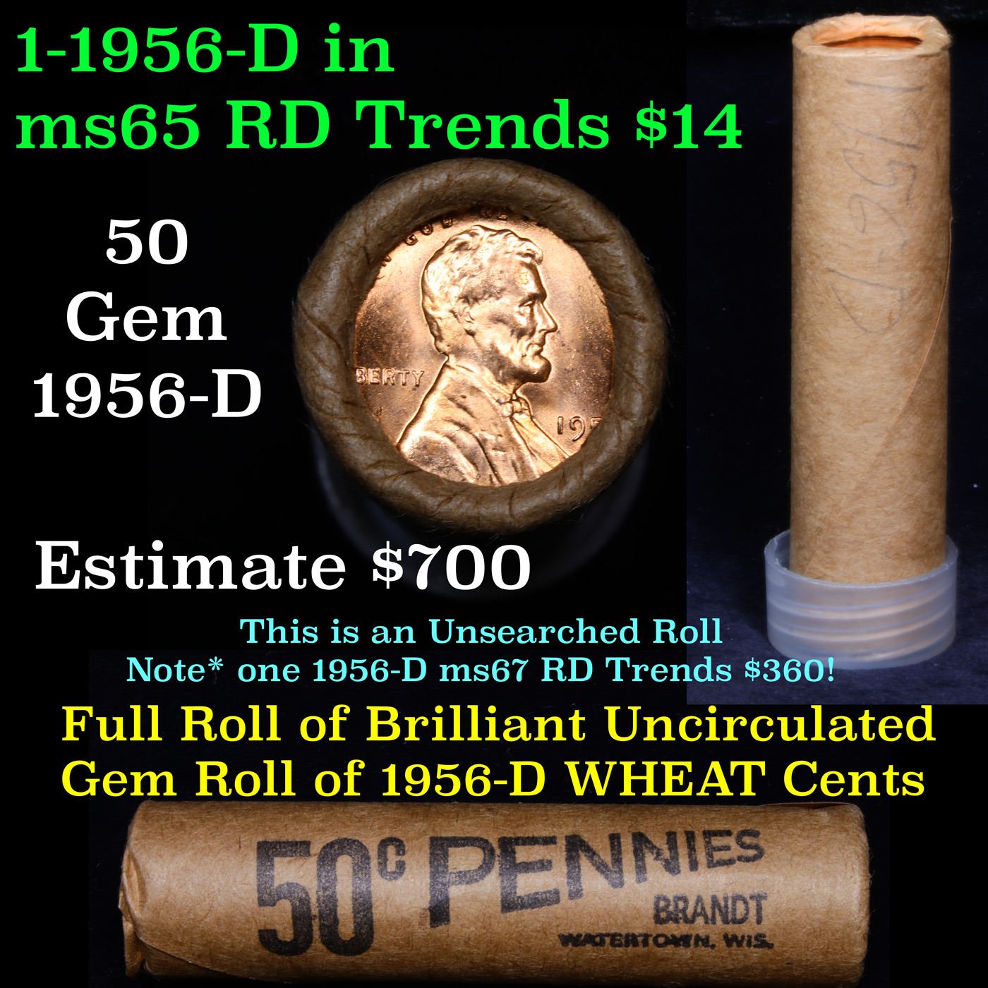 Uncirculated Shotgun Lincoln 1c roll, 1956-d 50 pcs Brandt Wrapper