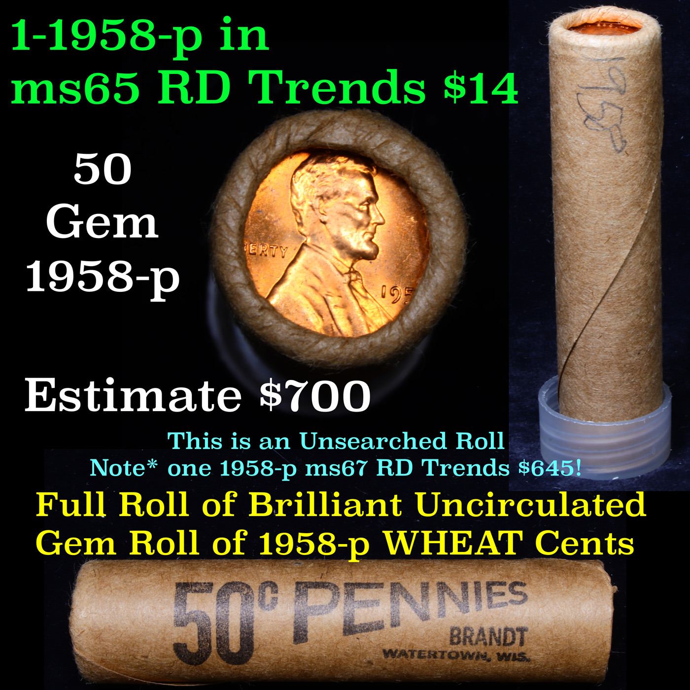 Uncirculated Shotgun Lincoln 1c roll, 1958-p 50 pcs Brandt Wrapper Grades