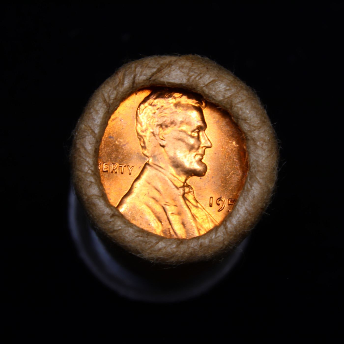 Uncirculated Shotgun Lincoln 1c roll, 1958-p 50 pcs Brandt Wrapper Grades. A terrific Shotgun roll of Lincoln cents. All coins cherry red. Trends ms65 rd $14 Estimate $700