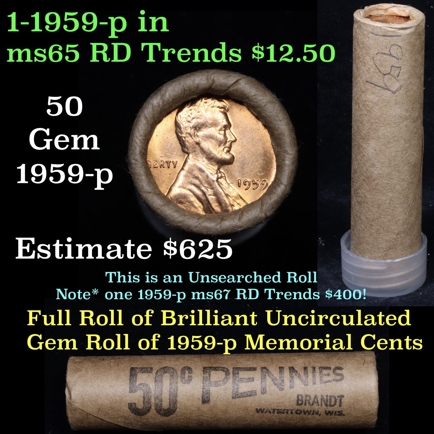 Uncirculated Shotgun Lincoln 1c roll, 1959-p 50 pcs Brinks Wrapper Grades