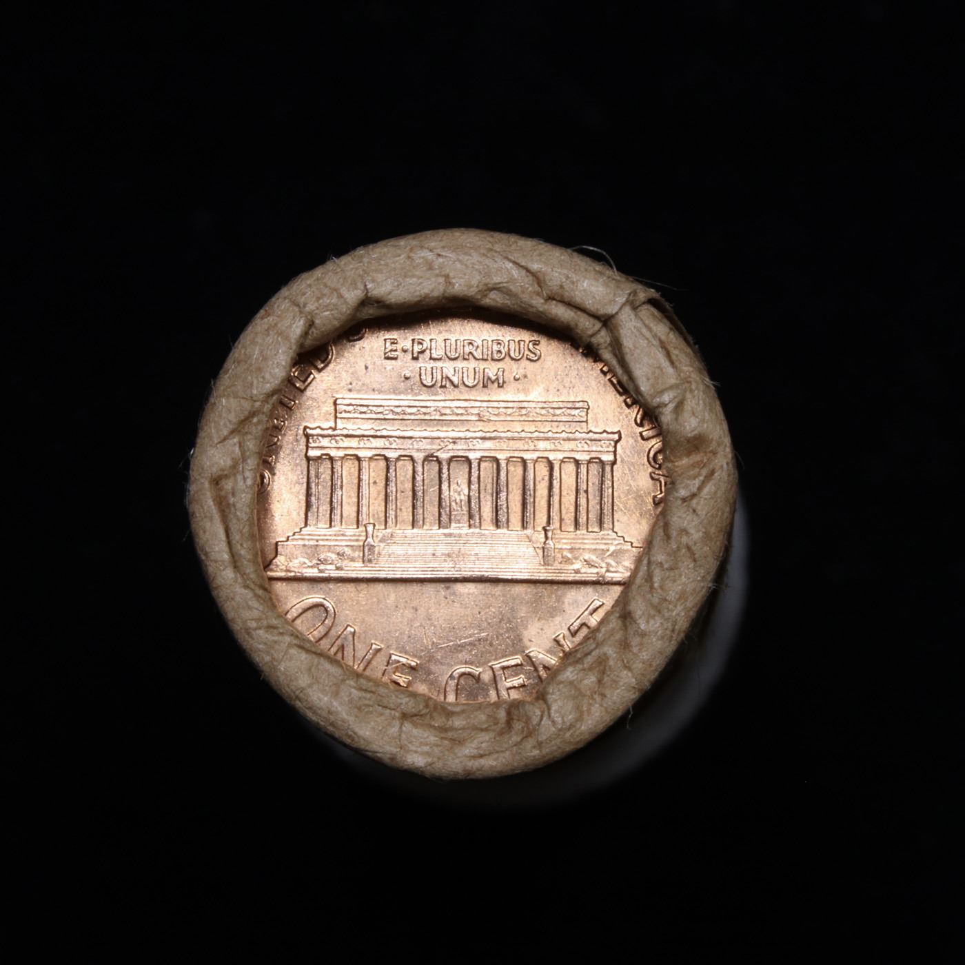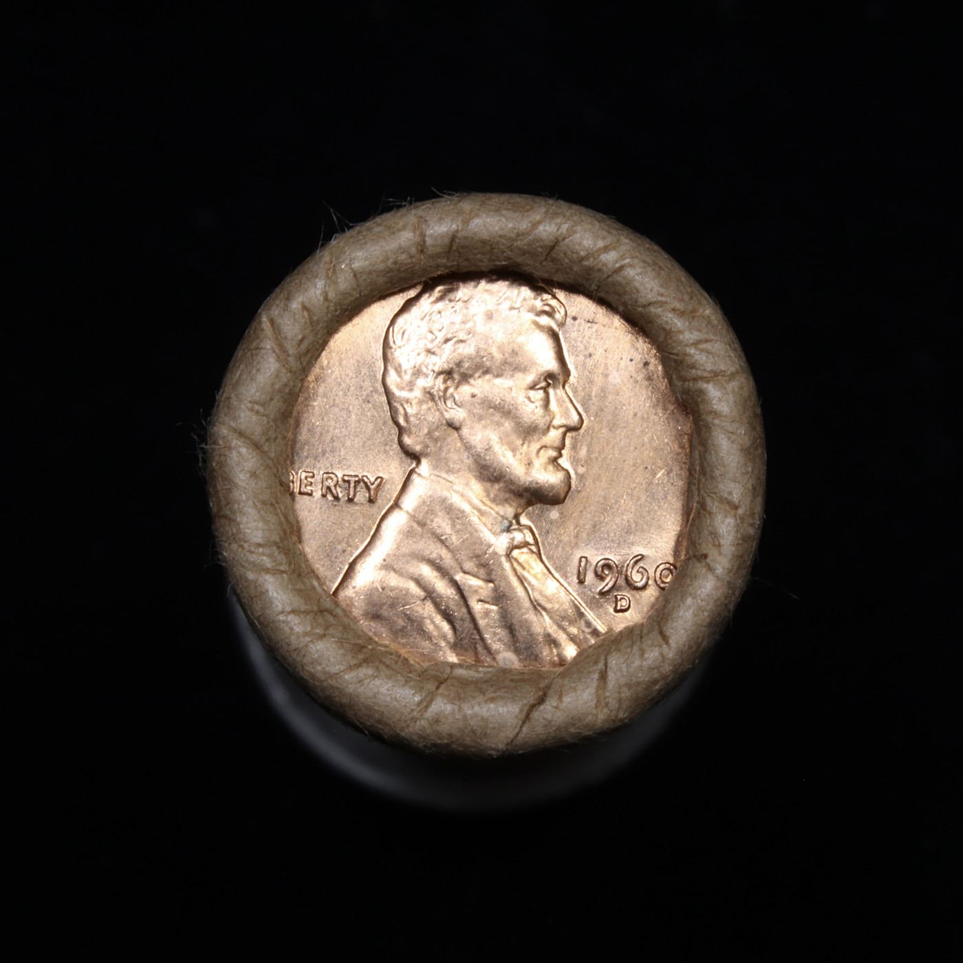 Uncirculated Shotgun Lincoln 1c roll, 1960-d small date 50 pcs Brinks Wrapper Grades. A terrific Shotgun roll of Lincoln cents. All coins cherry red. Trends ms65 rd $20 Estimate $1000