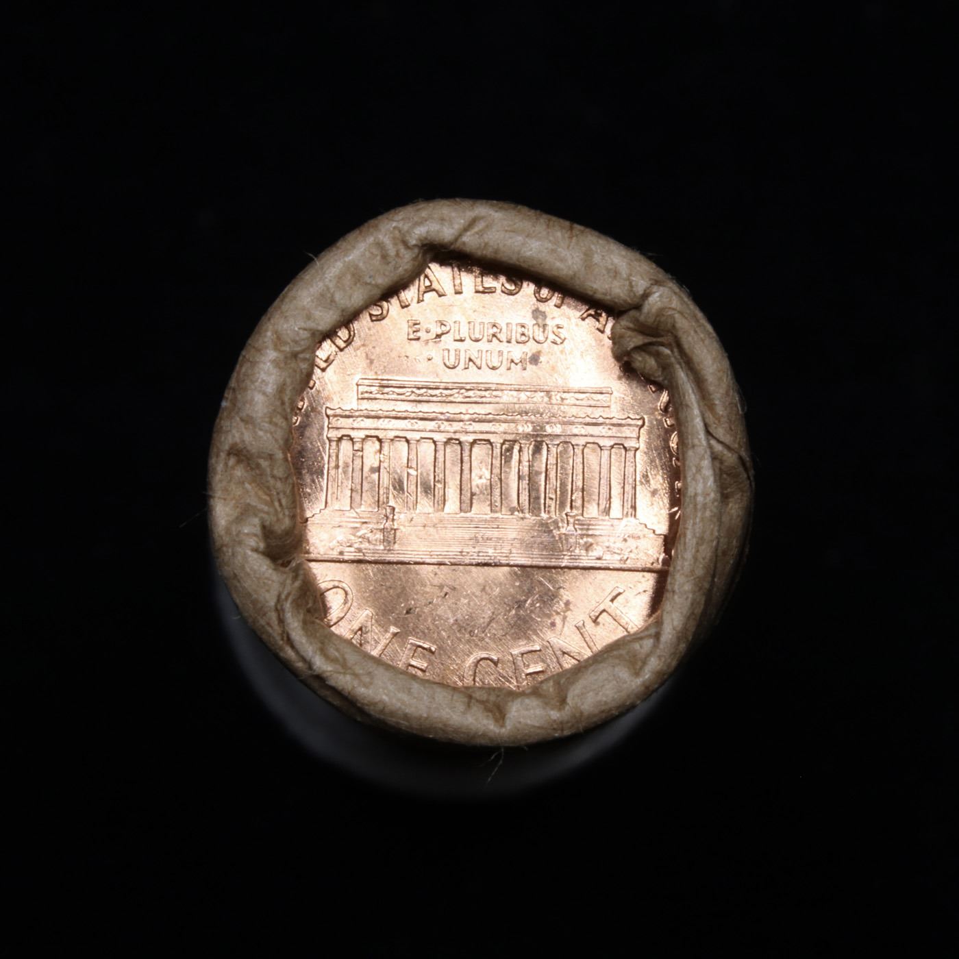 Uncirculated Shotgun Lincoln 1c roll, 1965-p 50 pcs Brinks Wrapper Grades. A terrific Shotgun roll of Lincoln cents. All coins cherry red. Trends ms65 rd $15 Estimate $750