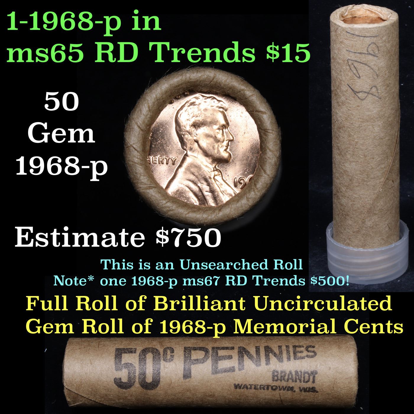 Uncirculated Shotgun Lincoln 1c roll, 1968-p 50 pcs Brinks Wrapper Grades
