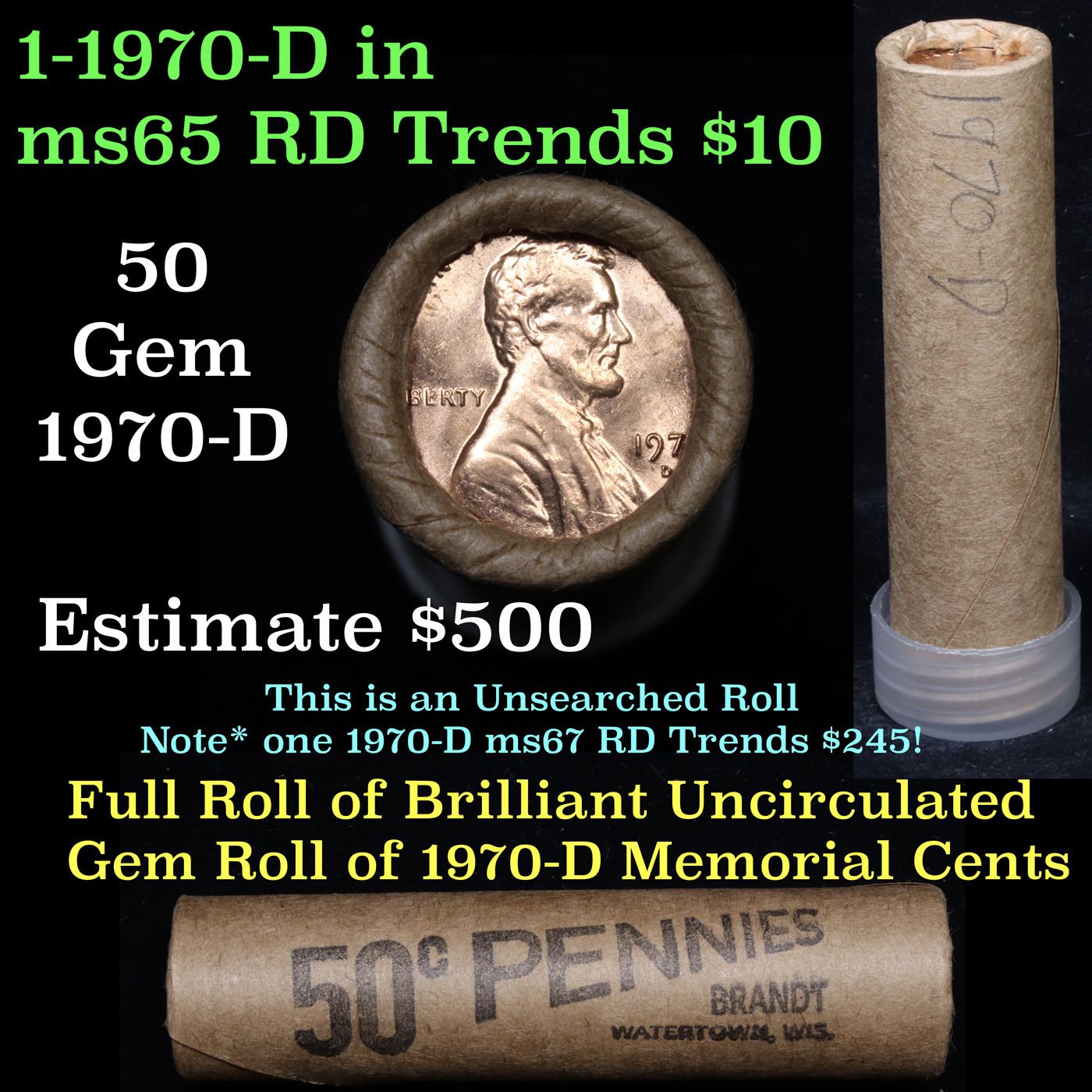 Uncirculated Shotgun Lincoln 1c roll, 1970-d 50 pcs Brinks Wrapper Grades