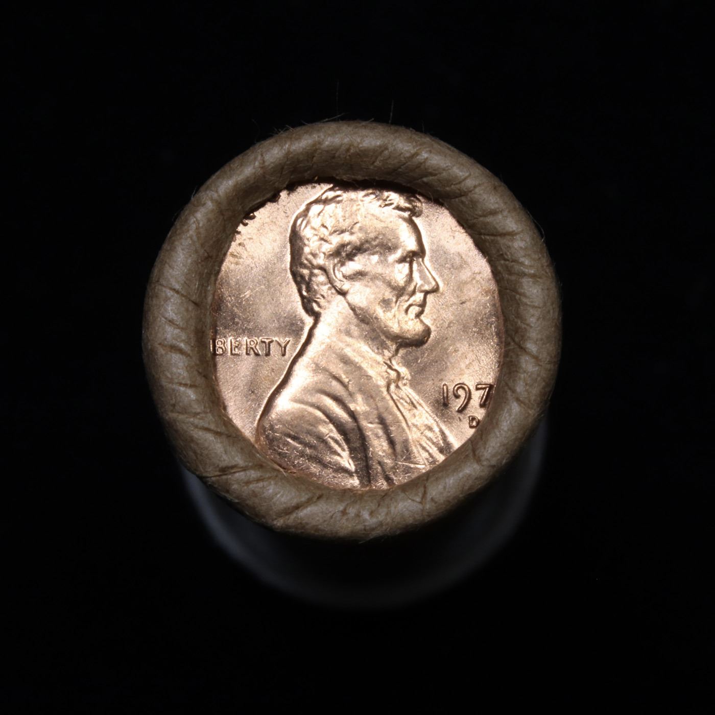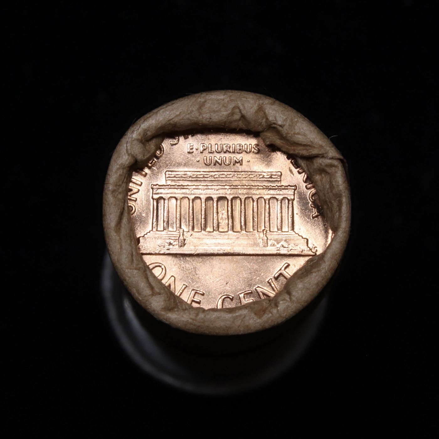Uncirculated Shotgun Lincoln 1c roll, 1970-d 50 pcs Brinks Wrapper Grades. A terrific Shotgun roll of Lincoln cents. All coins cherry red. Trends ms65 rd $10 Estimate $500