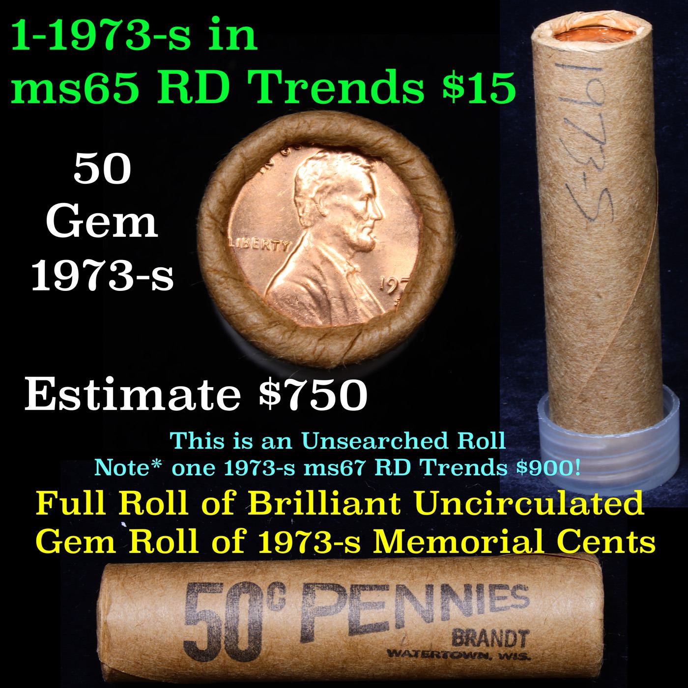 Uncirculated Shotgun Lincoln 1c roll, 1973-s 50 pcs Brandt Wrapper Grades