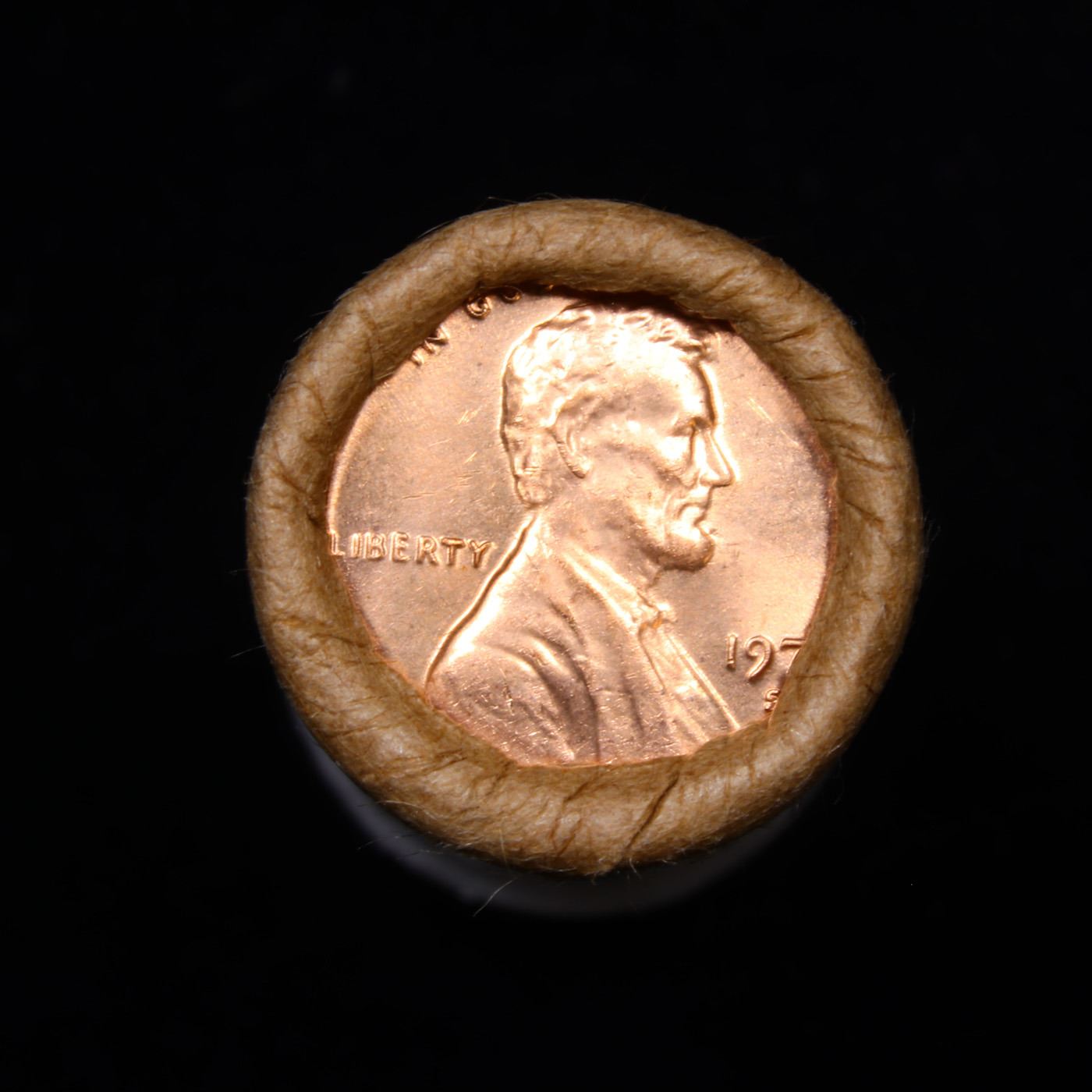 Uncirculated Shotgun Lincoln 1c roll, 1973-s 50 pcs Brandt Wrapper Grades. A terrific Shotgun roll of Lincoln cents. All coins cherry red. Trends ms65 rd $15 Estimate $750