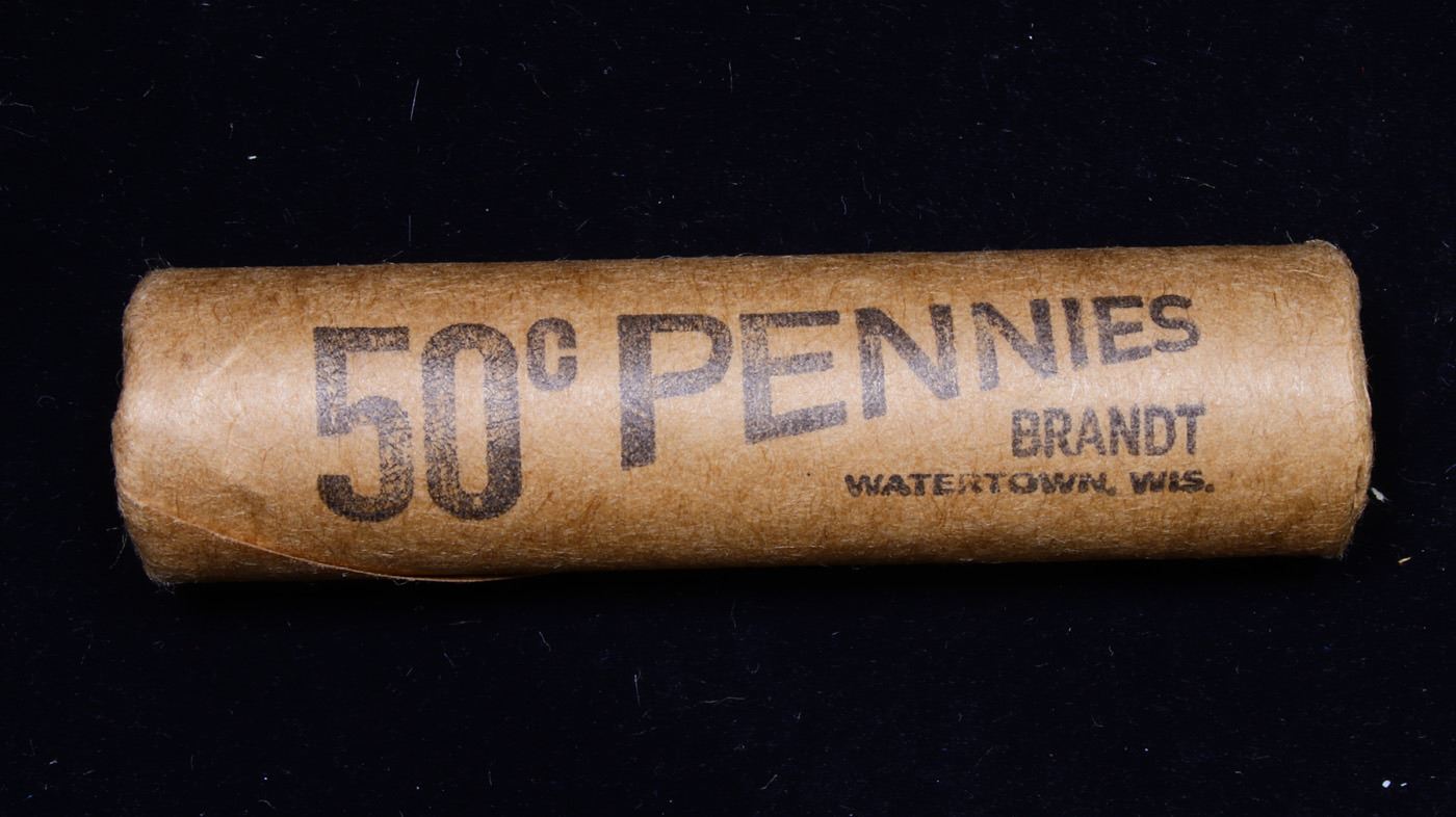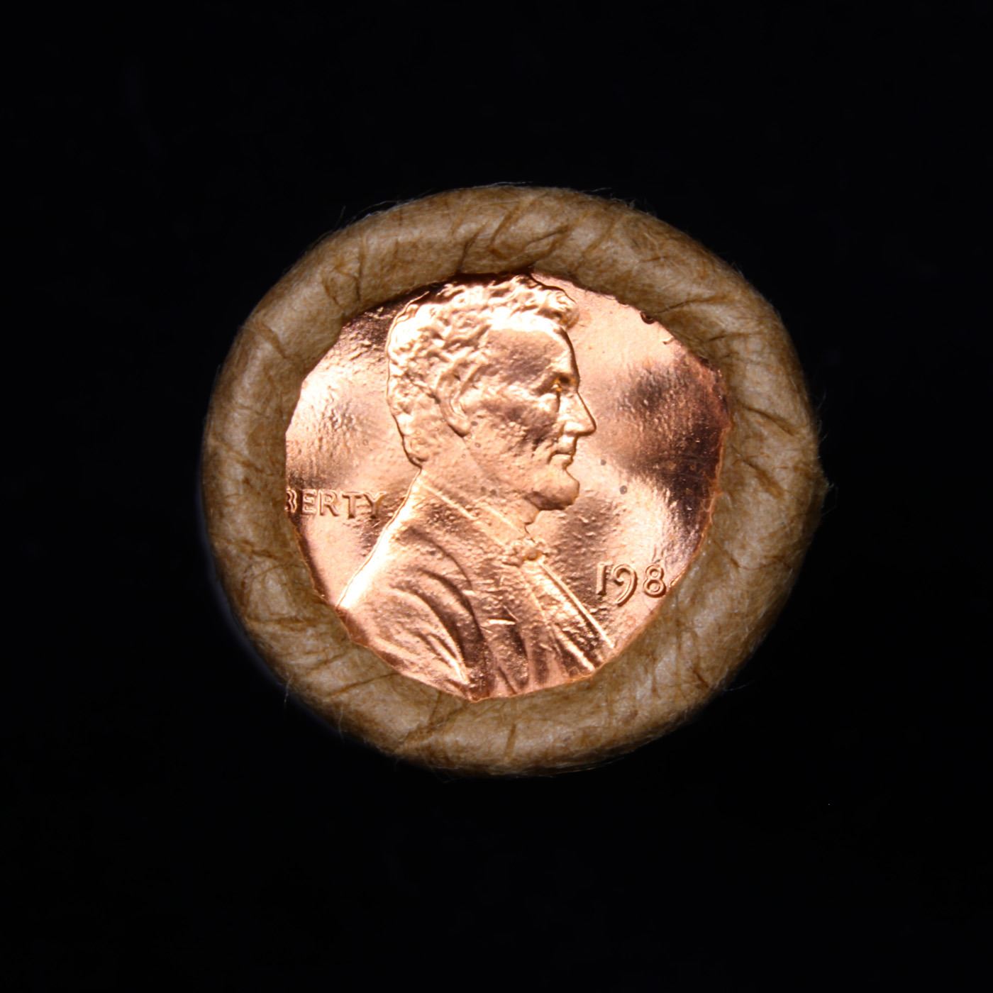 Uncirculated Shotgun Lincoln 1c roll, 1984-p 50 pcs Brandt Wrapper . A terrific Shotgun roll of Lincoln cents. All coins cherry red. Trends ms65 rd $10 Estimate $500