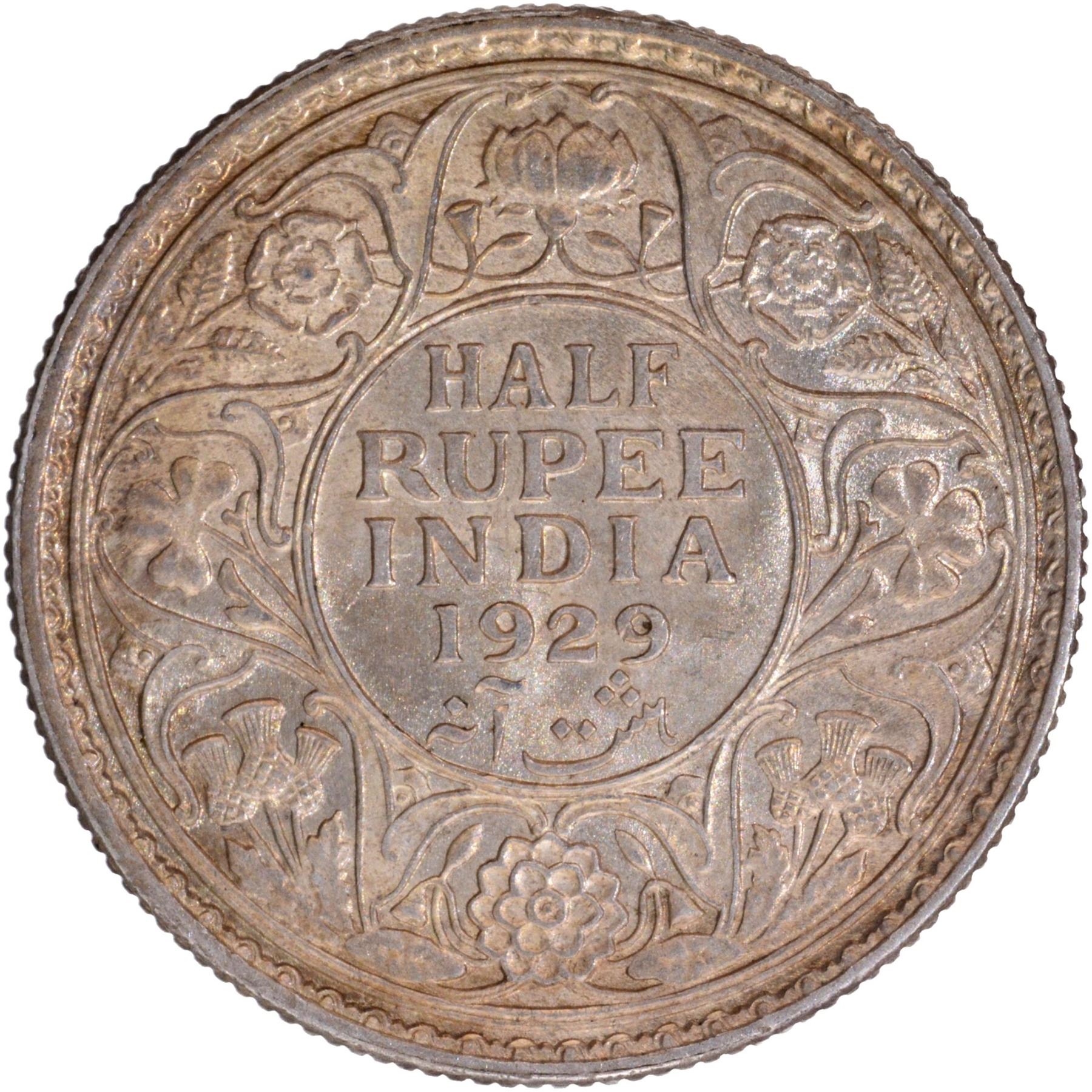 1929, King George V, Silver 1/2 Rupee, Calcutta Mint, no dot,(PR # 331/GK # 1071), little toning, ghost impression, UNC.