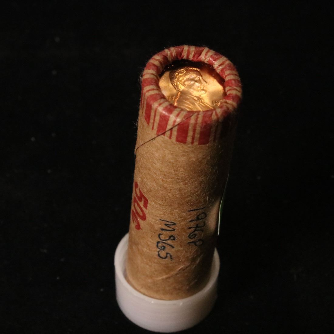 Uncirculated small cents 1c orig shotgun roll, 1976-p. A real find. A great shotgun roll of brilliant uncirculated red lincoln cents. All 1976-p. Trends lists ms64rd at $7.50/each, $300