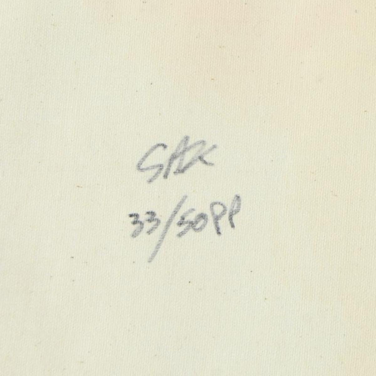 "Uncle Sam" is a hand painted limited edition silkscreen on canvas by Andy Warhol protege Steve Kaufman (1960-2010). This piece is PP numbered 33/50 and hand signed inverso. Includes Certificate of Authenticity. Measures approx. 15" x 16" (image). Please